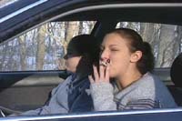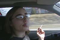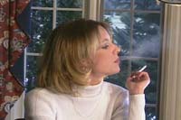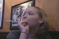 The Beginning: Volumes 1, 2, and 3 were the first video's that IRL shot. Each volume is 60 minutes long and has music background. These videos consist of a mix of indoor and outdoor scenes. Most of the indoor scenes were shot in bars or resturants with available lighting. A few of the scenes were shot with IRL's first attempt at artificial lighting and backlighting. If you are a fan of studio backlighting and strong exhales you may not find their earlier videos to your liking. Some of the scenes were lit well with good exhales, but some were on the dark side with poorly visible exhales. Most of the outdoor scenes have dispersed exhales due to wind. However if you are a fan of holding, light-ups, and dragging, you will be pleased. There are a number of scenes that feature Julie in a leather jacket, with and without leather gloves. There are a number of scenes that feature Danielle and Christi in a hot tub by candlelight, in bikinis. Julie and Halle perform french inhales in scenes throughout this series, and Halle shows very deep cheek-hollowing drags with a natural snap. Through this series the most widely smoked brands are Marlboro Light 100's and VS 120's. However there are also Marlboro 100's, Newport 100's, Capri's, Salem 100's, and B&H 100's.