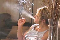 The "Real Life" series features attractive "real" girls smoking in natural settings, with front and back studio lighting. This video has natural audio and dialogue in the duo scenes, and is around one hour in length. In RL Capris 2 you will see Bobbi, Halle, Korey, Jaqui, and Cathy. You will see subtle snaps and nostril exhales in some scenes. You will see the girls enjoy Capri 100's and Capri 120's.