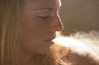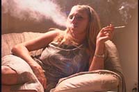 Danielle Reds is 50 minutes in length and features natural audio. Danielle shows natural snap inhales and French inhales. This video also includes great close-up shots, and as Danielle is very conscious of the video's purpose, she makes great eye contact as she plays to the camera. Danielle smokes a variety of cork filter cigarettes in this video to include Marlboro 100s, Marlboro Menthols, and Newport 100s.