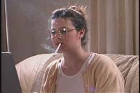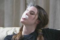 Danni: Solo is one hour in length and features background music. Danni appears in a variety of clothing styles from a schoolteacher look with glasses and hair up, to an evening gown, and even nothing but a sweater and nylons. You will see Danni give a good show and even perform some french inhales. She smokes a variety of brands and styles of cigarette to include Marlboro Menthol Light 100's, VS 120's, Marlboro 100's, and Newport 100's.