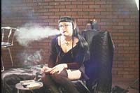 This title is 1 hour, 15 minutes in length, and features natural audio. These three videos (A-side, B-side, C-side) were filmed as an experiment. The scenes were shot with three different cameras, and each video shows the "same" action, but from completely different angles: full, close-up, or profile. (Check the preview pics for each title to see the differences.) You will meet Goth chicks Desmana, Samantha, Eva, Tina, and Staci. You will see Eva perform open mouth inhales and slow snaps. Staci shows us a few french inhales. Tina while only a social smoker performs well and toys with the smoke in slow drifts. You will see the girls enjoy VS 120's, VS 100, Marlboro 100's and Light 100's, B & H 100's, and Camel Light 100's.