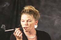 The "Real Life" series features attractive "real" girls smoking in natural settings, with front and back studio lighting. This video has no audio, and is around one hour in length. Half of the footage in this video is taken from previous IRL releases...scenes with Halle and Julie have been taken from other videos and compiled on this tape for holder fans. This video features footage of Emily, Maggie, and Christi that will not be in any other video. The models use 4, 6 and 8 inch holders. You will see a 60/40 mix of all whites vs corks, featuring VS Lights, Marlboro Lights 100's, Newports 100s, and Marlboro 100s.
