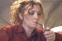 The "Real Life" series features attractive "real" girls smoking in natural settings, with front and back studio lighting. This video has natural audio, and is around one hour in length. In Real Life Mores 4 you will see Carrie, Frankie, Britney, and Moira. Britney shows us some open mouth inhales. The girls all smoke More 120's, and More Menthol 120's in this title.