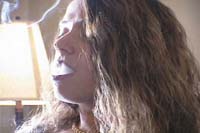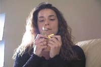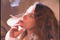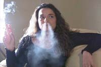Rebecca: Solo is one hour in length and features background music. Rebecca is a real woman, not some kid puffing and not inhaling. You will see Rebecca smoke proficiently performing frenches, open mouth inhales, and on quite a few ocasions showing a natural snap. Rebecca appears in a variety of more dressy outfits, to include among others a red suede pantsuit, and leopard-print miniskirt and hose. Rebecca smokes Newport 100's, Marlboro 100's, ML 100's, and VS 120's in this video.