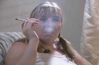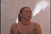 The "Real Life" series features attractive "real" girls smoking in natural settings, with front and back studio lighting. This video features background music, and is around one hour in length. In RL 4 you will see Danielle, Caitlin, and Christi in a variety of clothing styles from casual to a little more dressy. The main attraction is Danielle who performs natural snaps, open mouth inhales, and numerous french inhales. Caitlin and Christi show us a more reserved straightforward smoking style. Caitlin has a shy yet proficient style that almost has the look of a cute beginning smoker. You will see the girls enjoy a variety of brands and styles of cigarette to include Marlboro Milds, Marlboro menthol Light 100's, VS 120's menthol, VS 100 menthol, and Newport 100's.