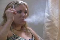 The "Real Life" series features attractive "real" girls smoking in natural settings, with front and back studio lighting. This video features background music, and is around one hour in length. In RL 5 you will see Danielle, Caitlin, and Christi in a variety of clothing styles from casual to a little more dressy. The main attraction is Danielle who performs natural snaps, open mouth inhales, and numerous french inhales. Caitlin and Christi show us a more reserved straightforward smoking style. Caitlin has a shy yet proficient style that almost has the look of a cute beginning smoker. You will see the girls enjoy a variety of brands and styles of cigarette to include Marlboro Milds, Marlboro menthol Light 100's, VS 120's menthol, VS 100 menthol, and Newport 100's.