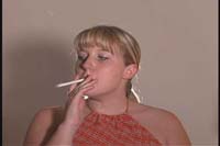 The "Real Life" series features attractive "real" girls smoking in natural settings, with front and back studio lighting. This video features background music, and is around one hour in length. In RL 6 you will see Danielle, Caitlin, and Christi in a variety of clothing styles from casual to a little more dressy. The main attraction is Danielle who performs natural snaps, open mouth inhales, and numerous french inhales. Caitlin and Christi show us a more reserved straightforward smoking style. Caitlin has a shy yet proficient style that almost has the look of a cute beginning smoker. You will see the girls enjoy a variety of brands and styles of cigarette to include Marlboro Milds, Marlboro menthol Light 100's, VS 120's menthol, VS 100 menthol, and Newport 100's.