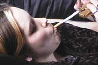 The "Real Life" series features attractive "real" girls smoking in natural settings, with front and back studio lighting. This video has dialogue and music, and is around one hour in length.In Real Life 21 you will see Jody and Missy. You will see natural snaps from Jody, and Missy demonstrates small French inhales. For this vid Jody left her usual black Megadeath T-shirt behind and dressed up a little. You will see the girls enjoy a variety of brands and styles of cigarettes to include Marlboro Light 100s, Marlboro 100s, and Newport 100s.