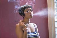 The "Real Life" series features attractive "real" girls smoking in natural settings, with front and back studio lighting. This video has natural audio and some dialogue, and is around one hour in length. In Real Life 28 you will see Ashley, Holly, Leia, and Mercedes. The real star of this video is Holly, a lovely light-skined woman of color. Holly performs seamless open mouth inhales, french inhales, and some incredibly powerful nostril exhales. You will see the girls enjoy a variety of brands of cigarette to include VS 120s, Marlboro Light 100's, and Benson & Hedges menthol 100s.