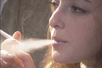 The "Real Life" series features attractive "real" girls smoking in natural settings, with front and back studio lighting. This video has natural audio, and is around one hour in length. In Real Life 34 you will see Sarah, Bionca, Britney, and Moira. Sarah steals the show in this vid. She smokes with style showing thick exhales and some even thicker rings. You will see the girls enjoy a variety of brands of cigarette to include VS 120's, B&H ultra lights, VS 100s, and Marlboro Light 100s. Bionca also uses a leather cigarette case in her scene.