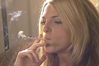 The "Real Life" series features attractive "real" girls smoking in natural settings, with front and back studio lighting. This video has natural audio, and is around one hour in length. In Real Life 48 you will see Bobbi, Cammi, Danielle, and Romy. You will see the girls enjoy a variety of brands of cigarette to include Newport 100's, Marlboro Light 100's, Salem Slim Lights, VS 120's, VS 100's, and Marlboro 100's gold pack.