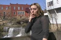The Beginning: Volumes 1, 2, and 3 were the first video's that IRL shot. Each volume is 60 minutes long and has music background. These videos consist of a mix of indoor and outdoor scenes. Most of the indoor scenes were shot in bars or resturants with available lighting. A few of the scenes were shot with IRL's first attempt at artificial lighting and backlighting. If you are a fan of studio backlighting and strong exhales you may not find their earlier videos to your liking. Some of the scenes were lit well with good exhales, but some were on the dark side with poorly visible exhales. Most of the outdoor scenes have dispersed exhales due to wind. However if you are a fan of holding, light-ups, and dragging, you will be pleased. There are a number of scenes that feature Julie in a leather jacket, with and without leather gloves. There are a number of scenes that feature Danielle and Christi in a hot tub by candlelight, in bikinis. Julie and Halle perform french inhales in scenes throughout this series, and Halle shows very deep cheek-hollowing drags with a natural snap. Through this series the most widely smoked brands are Marlboro Light 100's and VS 120's. However there are also Marlboro 100's, Newport 100's, Capri's, Salem 100's, and B&H 100's.