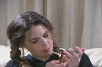 Danni: Solo is one hour in length and features background music. Danni appears in a variety of clothing styles from a schoolteacher look with glasses and hair up, to an evening gown, and even nothing but a sweater and nylons. You will see Danni give a good show and even perform some french inhales. She smokes a variety of brands and styles of cigarette to include Marlboro Menthol Light 100's, VS 120's, Marlboro 100's, and Newport 100's.