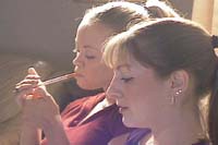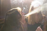 The "Real Life" series features attractive "real" girls smoking in natural settings, with front and back studio lighting. This video features natural audio and full on-topic dialogue, and is around one hour in length. In GS 8 you will see Sarah, Betsy, and Traci. Traci and Sarah perform some small snaps and open mouth inhales. You will see the girls enjoy a variety of brands of cigarette to VS Menthol 100s, Marlboro Light 100s, and Marlboro 100s, B&H 100s, VS Menthol 120s, and Newport 100s.
