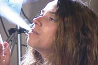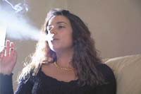 Rebecca: Solo is one hour in length and features background music. Rebecca is a real woman, not some kid puffing and not inhaling. You will see Rebecca smoke proficiently performing frenches, open mouth inhales, and on quite a few ocasions showing a natural snap. Rebecca appears in a variety of more dressy outfits, to include among others a red suede pantsuit, and leopard-print miniskirt and hose. Rebecca smokes Newport 100's, Marlboro 100's, ML 100's, and VS 120's in this video.