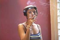 The "Real Life" series features attractive "real" girls smoking in natural settings, with front and back studio lighting. This video has natural audio and some dialogue, and is around one hour in length. In Real Life 28 you will see Ashley, Holly, Leia, and Mercedes. The real star of this video is Holly, a lovely light-skined woman of color. Holly performs seamless open mouth inhales, french inhales, and some incredibly powerful nostril exhales. You will see the girls enjoy a variety of brands of cigarette to include VS 120s, Marlboro Light 100's, and Benson & Hedges menthol 100s.